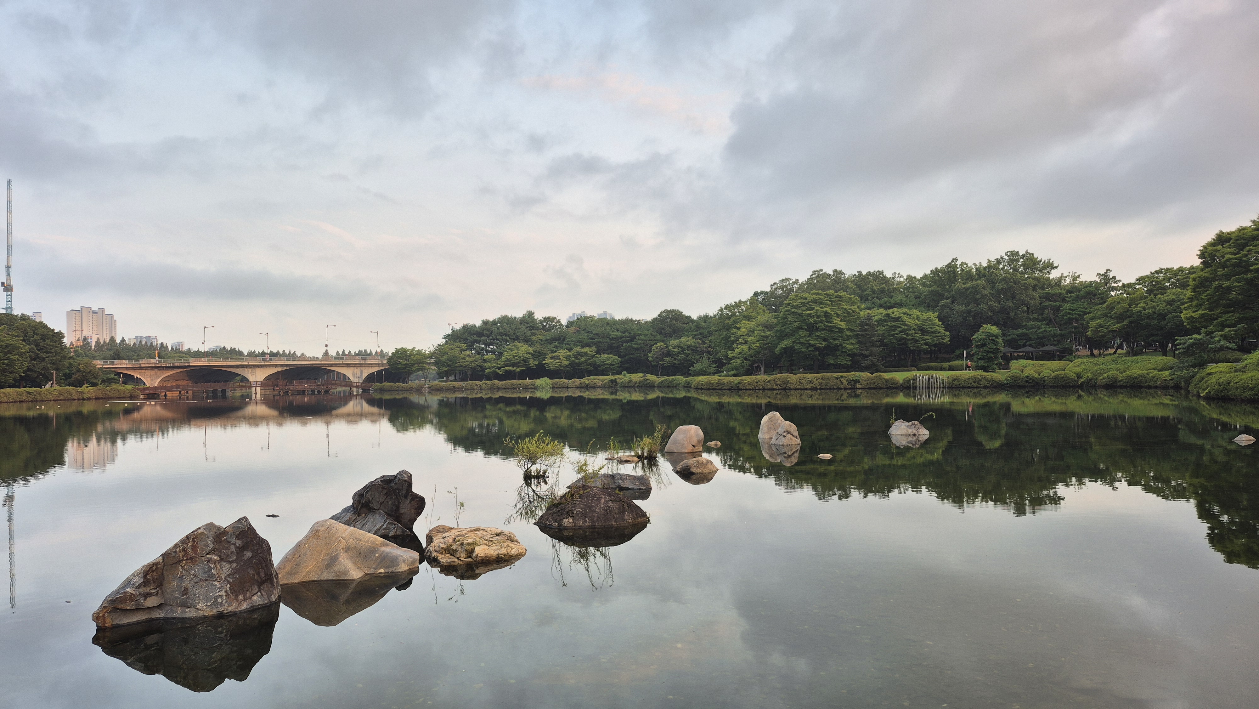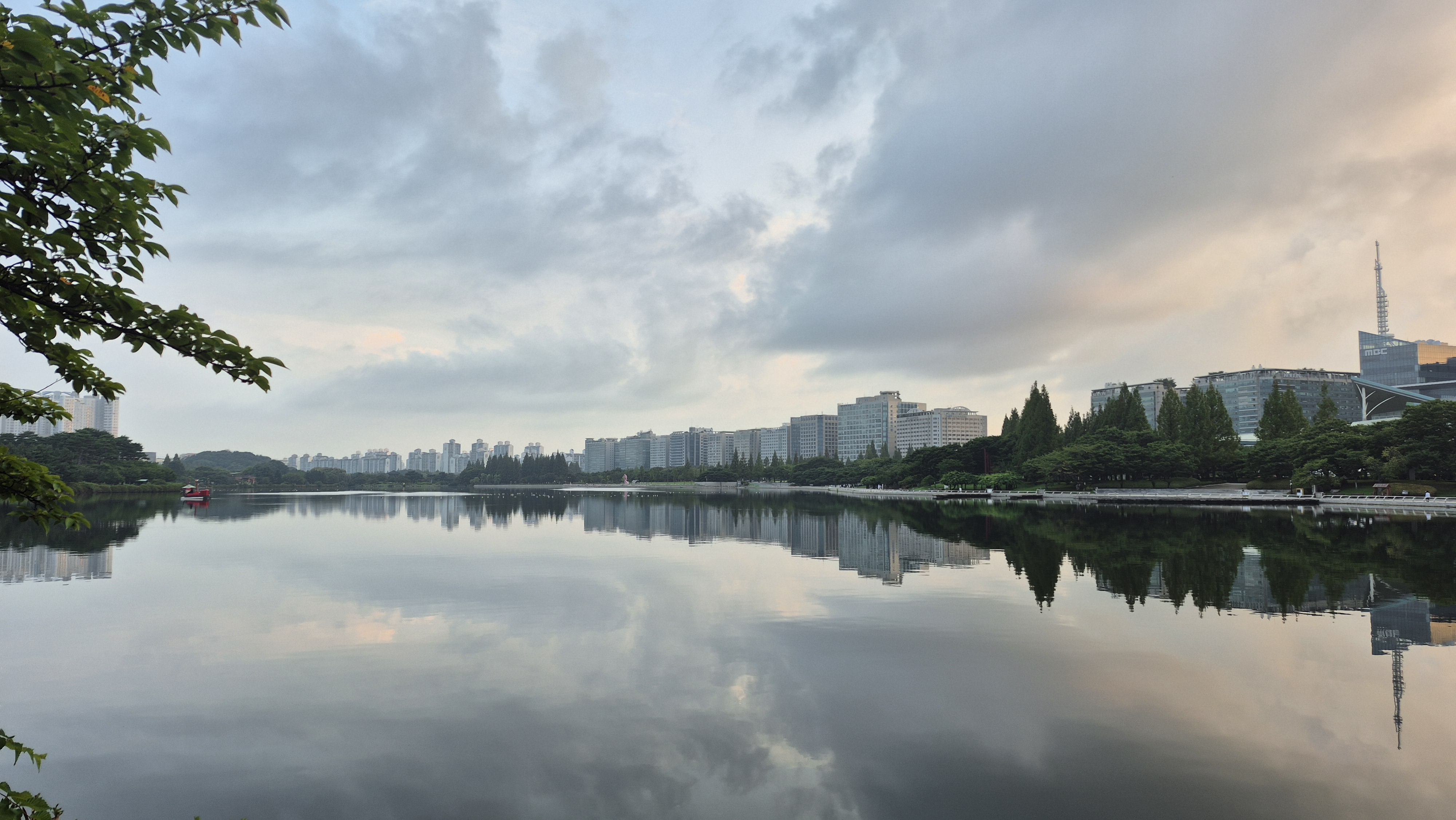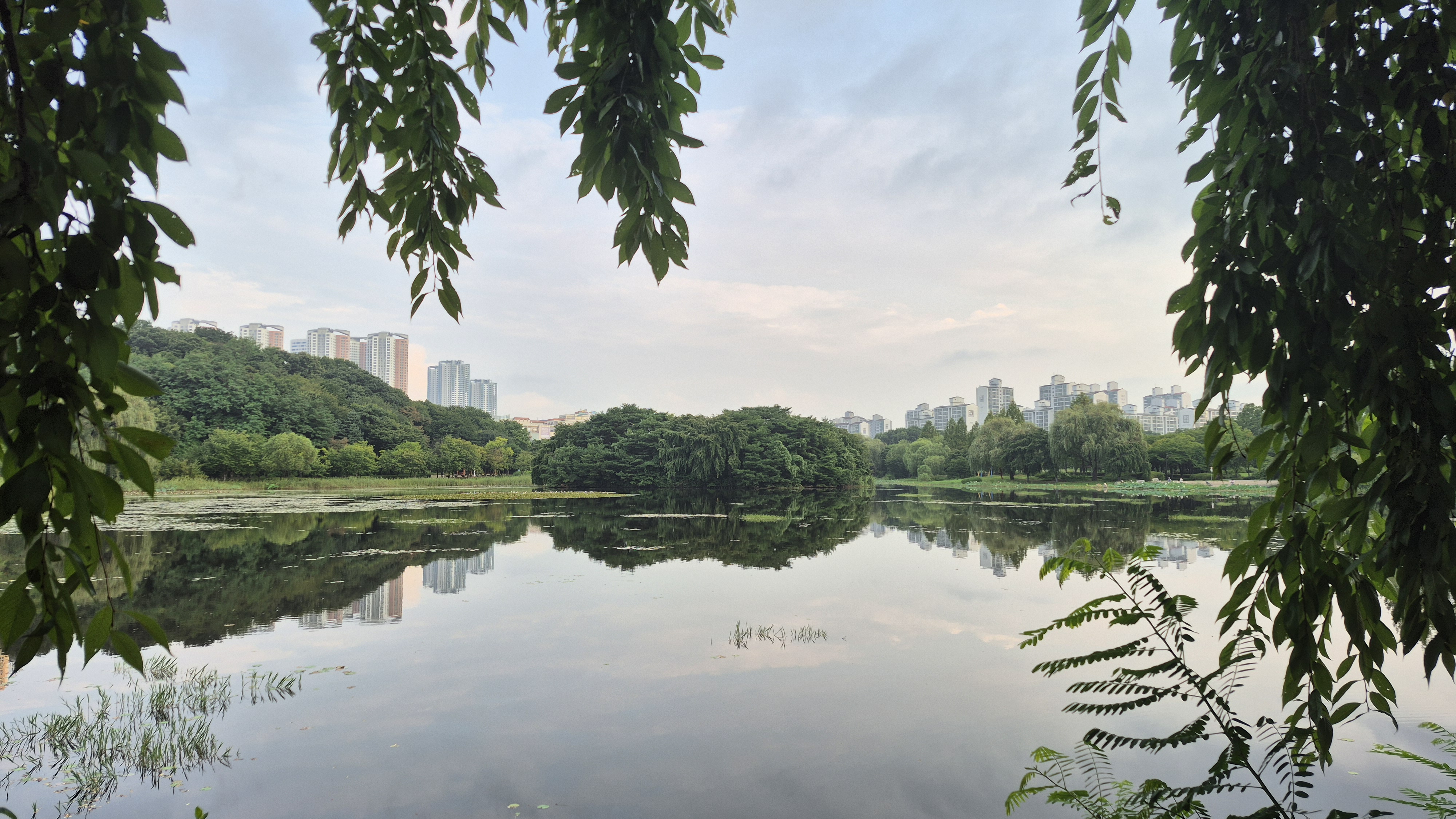 날씨가 흐리고 호숫가는 잔잔했다